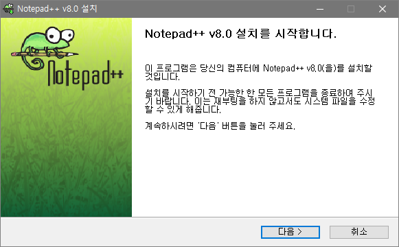 사용하는 컴퓨터는 x64 비트 지원이기 때문에 따라 맞춰서 내려받았으니 컴퓨터 사양을 잘 확인하시고 맞춰 다운로드해주세요! 되게 하찮게 생긴 카멜레온이 반기면서 방패 모양으로 된 아이콘도 달려 있는데 관리자 권한으로 실행해야 정상적으로 이용하실 수가 있고요. 더블 클릭해서 실행합시다. (설치 과정은 굉장히 쉽기 때문에 빨리 넘어가도록 하겠습니다.)